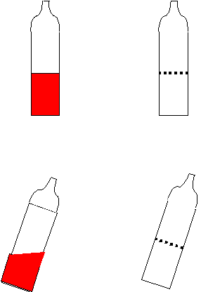 sketch of the bottle the liquid level. This the child does as in the top of the figure (dashed line).