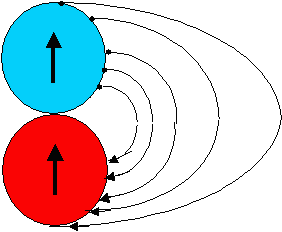 | Note that the top of the blue coin ends up touching the bottom of the red coin -- meaning that the blue coin rolls until finally |