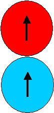then the top of blue coin is touching the bottom of the red coin, like so: